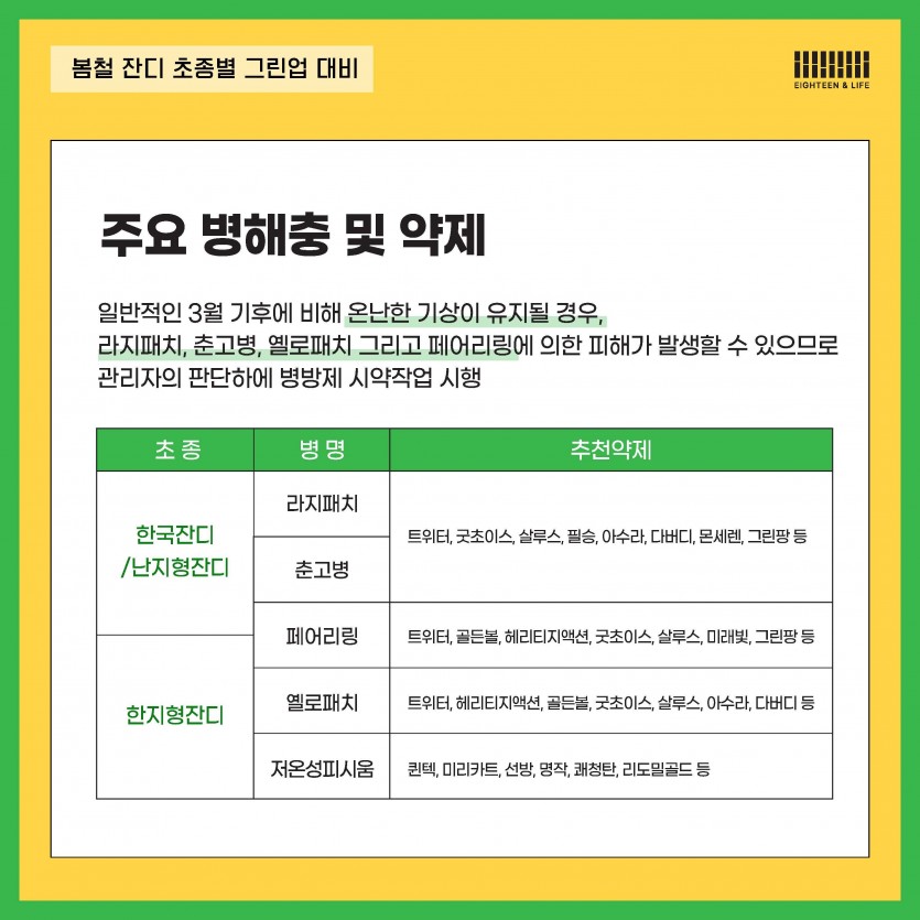 목록 3월 그린업 대비/주요 병해충 및 약제 페이지 정보 작성일 2025.04.29 본문 이전글 4월 잔디 관리 요령/주요 병해충 및 약제 25.04.29 목록목록 다음글 소나무재선충 진단 및 방제 23.12.26